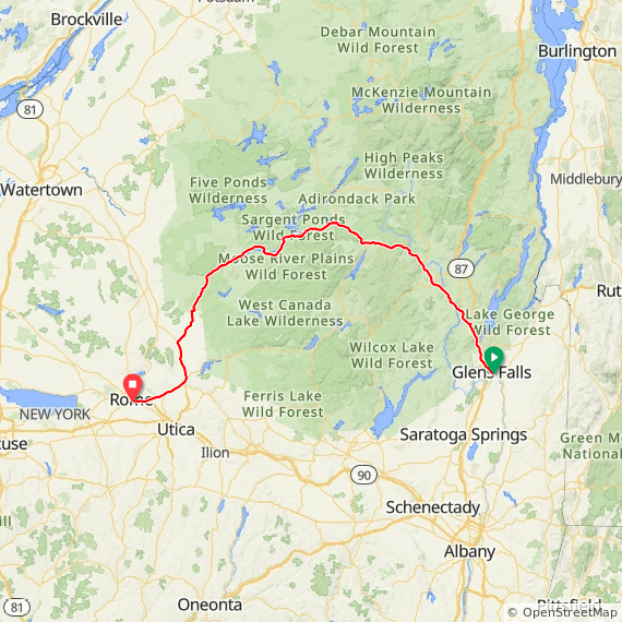 View the route from Glen Falls to Rome NY