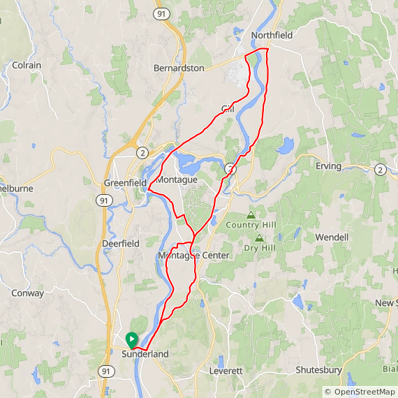 Start Roadside parking area on Rt. 116 , Deerfield MA just before crossing Connecticut River bridge to Sunderland.