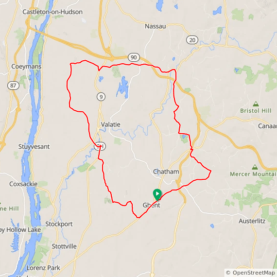 Miles of quiet farm country in the west, beautiful hilltop views and long downhill cruising in the east, and several historic sites. A favorite from Ken and Sharon Roberts’ “Bike Hudson” site.