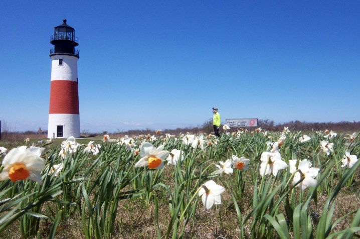 Deb and I celebrated her late April birthday with a trip to Nantucket, taking advantage of great early season rates at the Hotel at 21 Broad St. The ferry from Hyannis to Nantucket took about an hour, and surprisingly, we were the only people with bikes. We were fortunate to have 30 miles of paved paths to ourselves, and sunny weather with temperatures in the 60’s. In the historic town center many of the streets are cobblestone and the sidewalks are brick. We followed designated in-town cycling routes to bike paths that run alongside roads to the island’s shores.