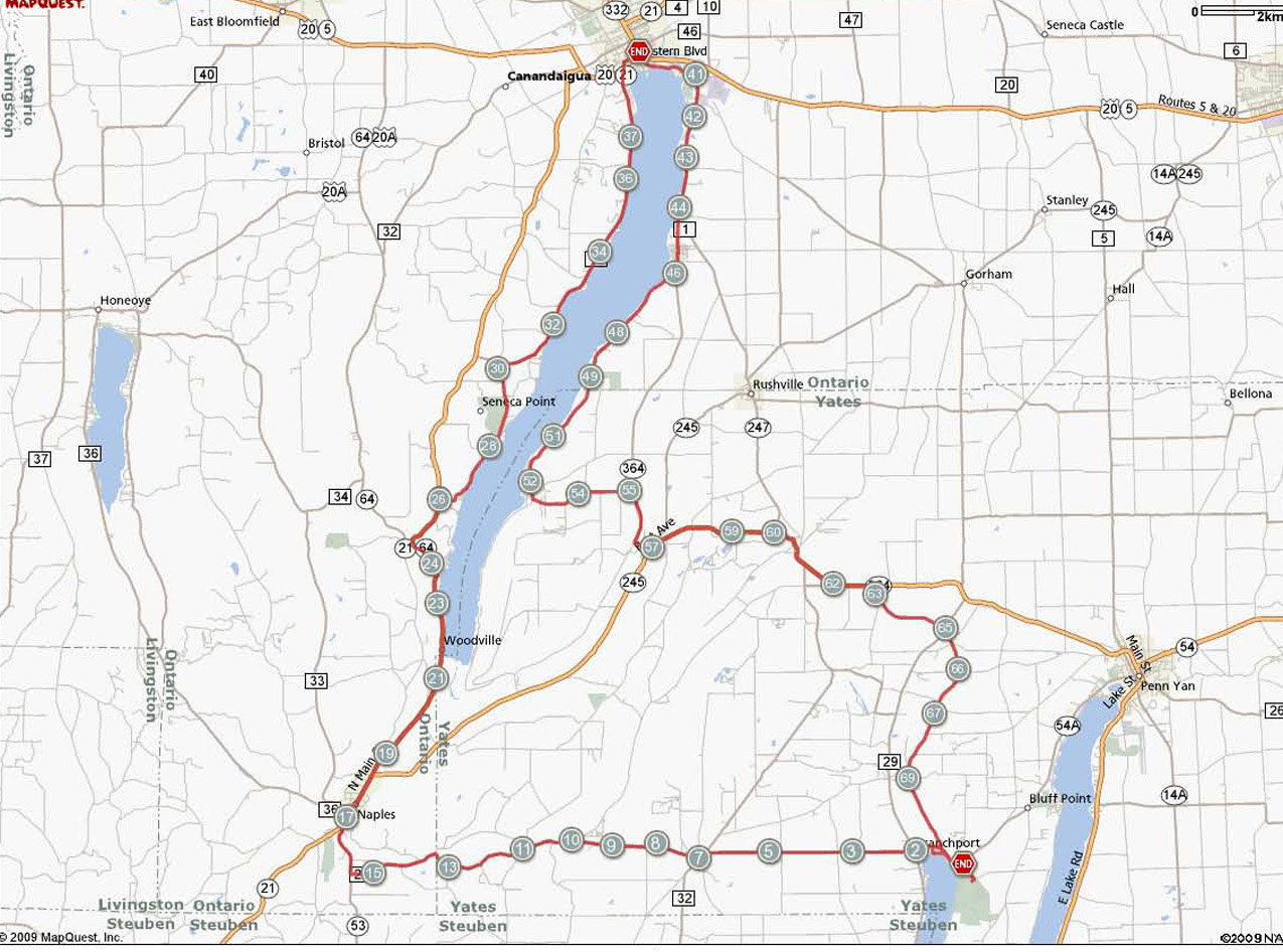 We keep the campground at Keuka Lake State Park. People who enjoy the challenge of climbs might wish to take Italy Hill Rd. to the southern tip of Canandaigua Lake, continuing north along the lake to Canandaigu, a 72 mile loop, returning to Keuka Lake State Park. You can take a somewhat “flatter” ride to Canandaigua by heading north from Branchport, and then turning west through local roads after about a dozen miles. Day_4_cue