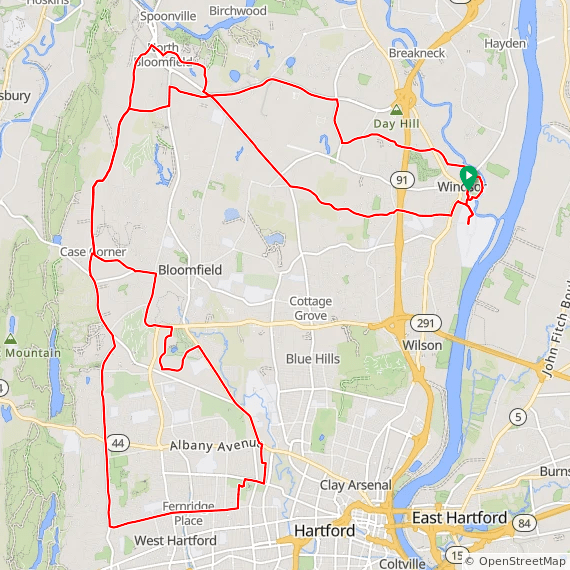 An easy bike ride from Windsor in north central Connecticut. The route takes you to Hartford’s Elizabeth Park where you can tour the rose gardens, after riding through Bloomfield and West Hartford.