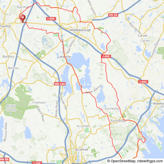 This Narragansett Bay Wheelmen century ride starts at the Middlebury High School on East Grove St. in Middleboro MA and forms a loop through Kingston, Duxbury, Marshfield and North Scituate along the coastline south of Boston. View the 93 mile version of this ride: Route at RideWithGPS View and print cue sheet View and print… Continue reading Middleboro MA to the coast