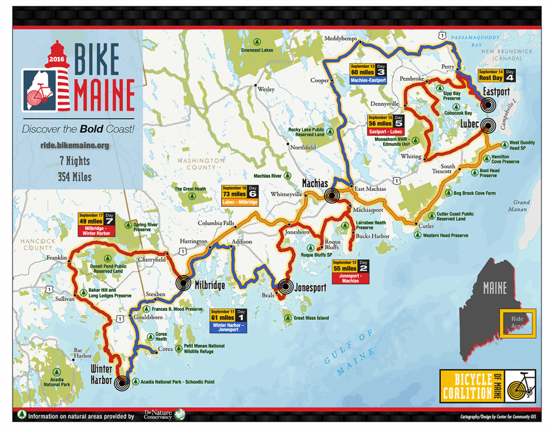 BikeMaine is a fully-supported, seven day cycling tour held in mid-September, the prime time to cycle in New England. The days are still warm, the nights are comfortably cool, and a hint of fall color is just beginning to appear on the trees. Cyclists pedal an average of 55 miles per day along moderately challenging… Continue reading Bike Maine