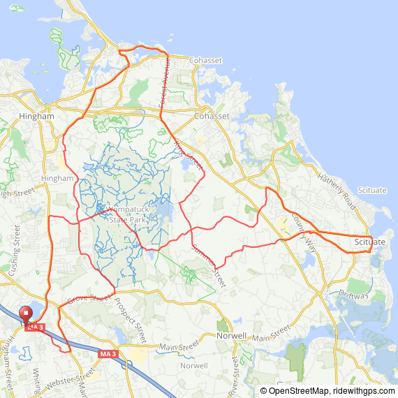 This Charles River Wheelmen ride is along shady, quiet roads offering great vistas of the Massachusetts shore shore coastline. The club offers this ride every week, weather permitting. The 39-mile loop includes Rockland, Hingham, Norwell, Scituate, and Cohasset The 52-mile ride adds a loop to Pemberton Point in Hull with a view of Boston Harbor… Continue reading Cycling the Massachusetts South Shore